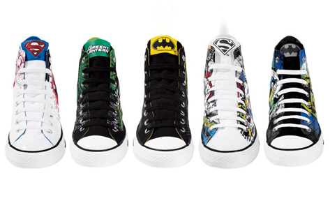 Celebrando el 75mo aniversario de DC Comics y tal como lo hiciese Colette y los italianos de Superga… la gente de Converse decidio lanzar una coleccion de sus ya clasicas Chuck Taylor All Stars en honor a algunos de los superheroes  de la archiconocida editora… como Superman Green Lantern ( Linterna Verde ) y el caballero oscuroBatman cuyas imagenes se pueden ver tras el salto. Estaran a la venta en la popular cadena de indumentaria y zapatillas americana Journey y en su website